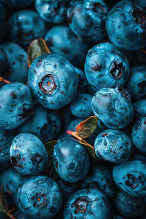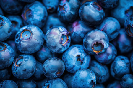 Close-up texture of fresh blueberries with a juicy. Ripe. And delicious appearance against a natural blue background. Showcasing their organic. Healthy. And antioxidant-rich qualities. Market