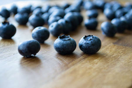 fresh organic blueberries sweet wholesome rustic on wooden table in farm close up top view