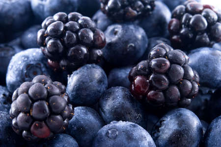 Fresh berries. Closeup background. Blackberry and Blueberry full frame.