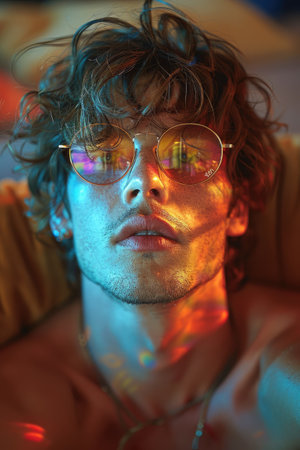 Portrait of a young man with glasses: A sunny day frames the confident gaze of a stylish young man, capturing his youthful charm.
