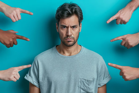 Blaming you. Anxious man judged by different people pointing fingers at him. Negative human emotions feeling --chaos 20 --ar 3:2 --style raw --stylize 400 --v 6 Job ID: 20c645e8-171f-481b-9ed6-e418d0b8f34f
