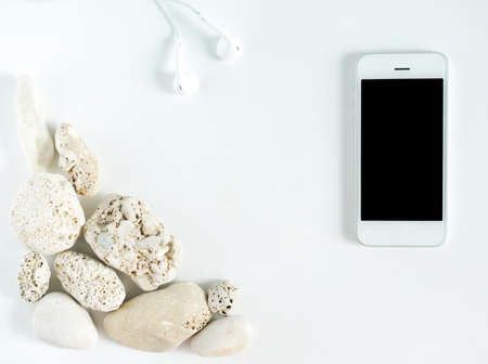 smartphone with earphone isolated white background. High quality beautiful photo concept