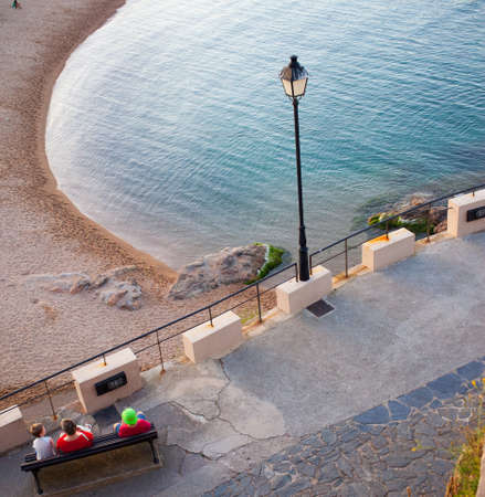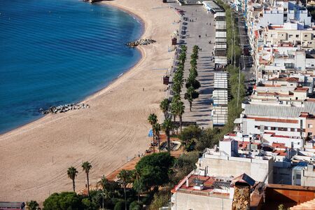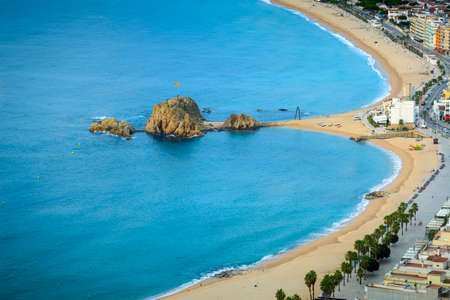 Beach and sea in resort town of Blanes on Costa Brava in Catalonia, Spain, view from above.