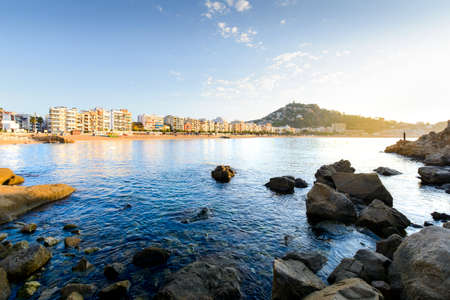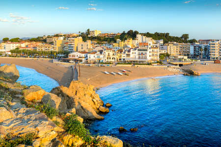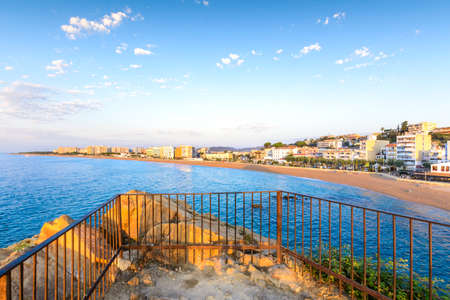 Blanes town at sunrise on Costa Brava in Spain, resort skyline and sea bay, popular holiday destination.