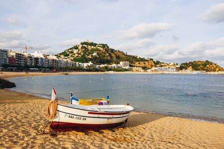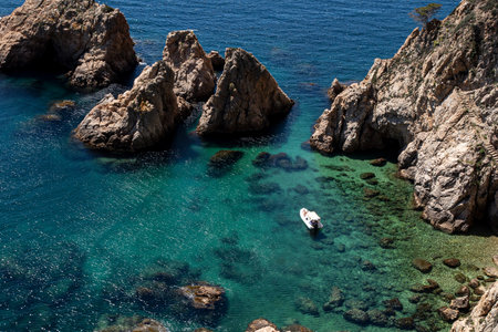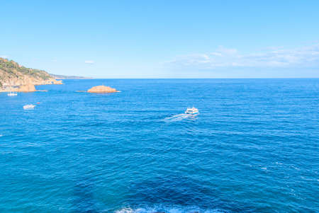 Calm sea bay and boat in the sea in Tossa de Mar, Catalonia