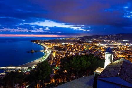 Costa Brava Spain. Sunset over the seaside resort of Blanes.
