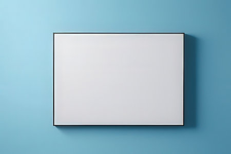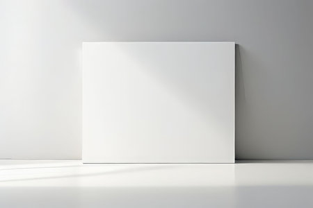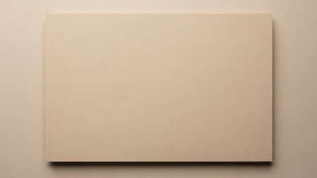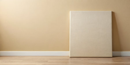 Shadow showing a plain, flat, rectangular beige canvas or board mounted on a slightly darker beige wall with subtle shadow casting. resolution...