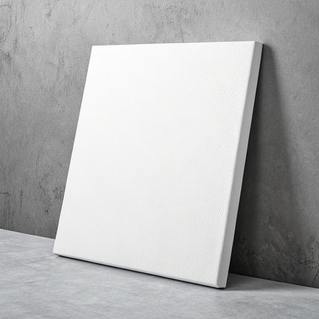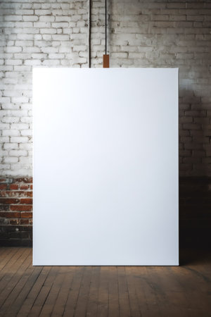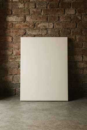 A blank canvas rests against a rustic brick wall, providing a neutral backdrop for artistic display.