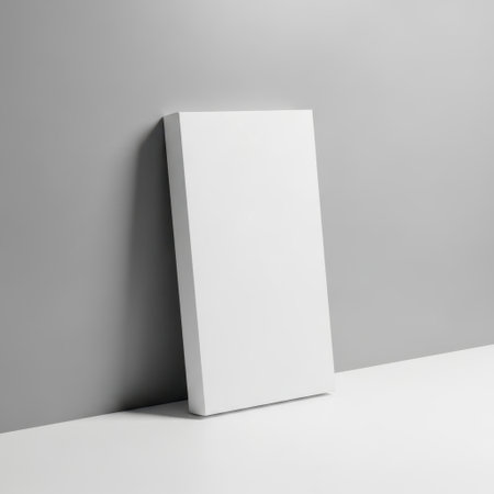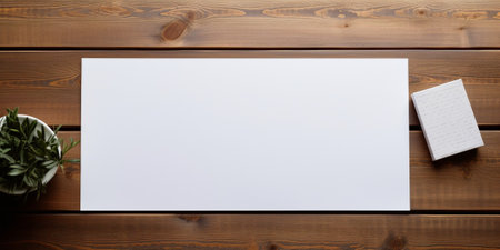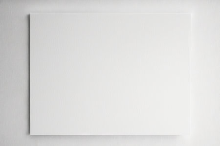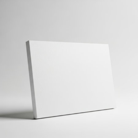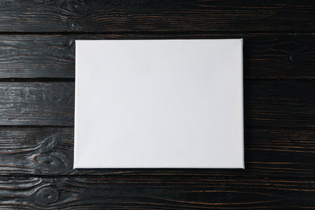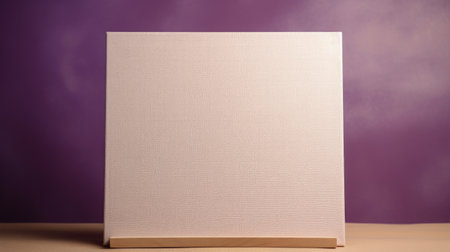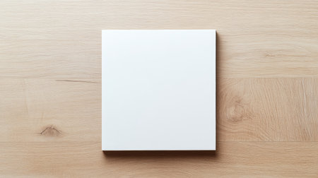 A clean, blank white canvas rests on a smooth wooden surface, offering a versatile foundation for artistic expressions, design concepts, or creative projects.