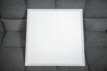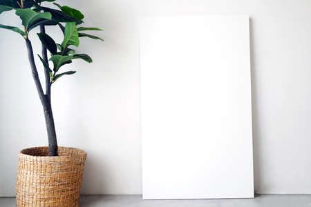 Blank canvas,poster or board against white wall on pvc floor in modern interior, empty room space for text background