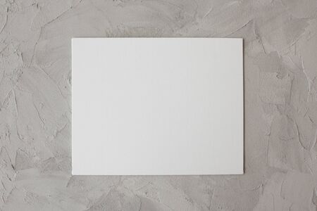 Gray textured concrete background, copy space for design. Trend texture of cement or rough surface, loft grunge style. Blank white canvas in the center.