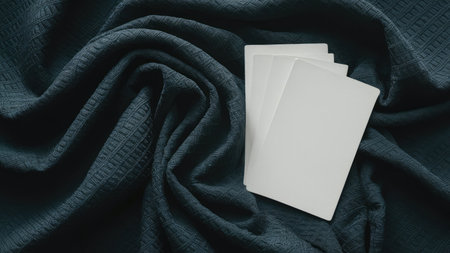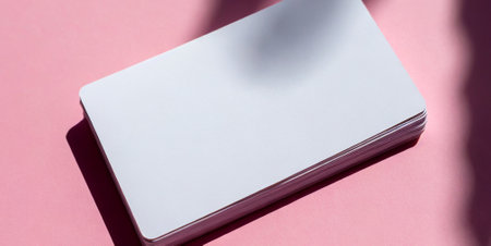 stack of rectangular white blank business cards on a blue background, backdrop for the designer