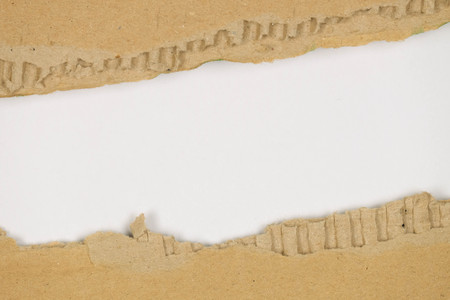 Piece of corrugated cardboard torn, isolated on white background. Cardboard texture ragged edge.