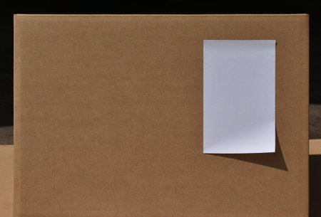 A template for writing on a cardboard box with a white piece of paper glued with red tape