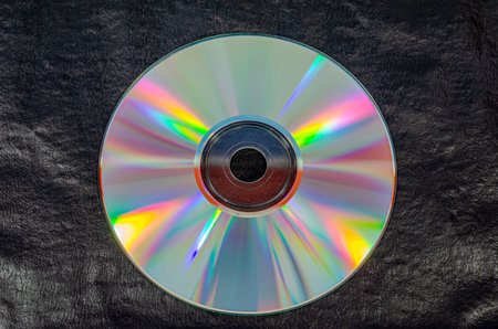 Close up of CD with reflection. Abstract photo with rainbow colored reflection.