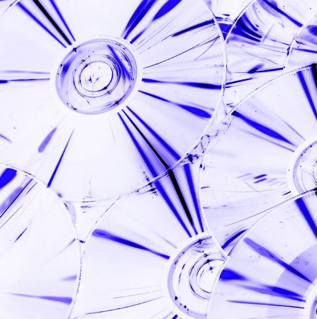 Lots of used laser CDs and DVDs on the surface of the table, technological background