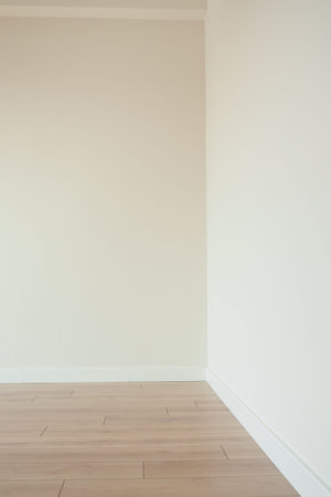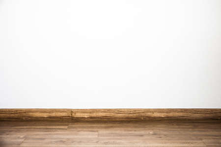 Home interior, empty room. White wall and ceiling with wood floor