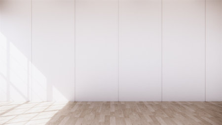 Empty room with white wall and wooden floor. 3D rendering.