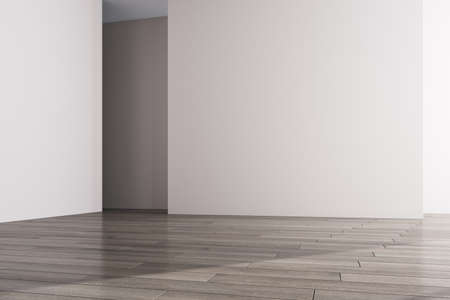 Empty room with white walls and wooden floor. 3d rendering.