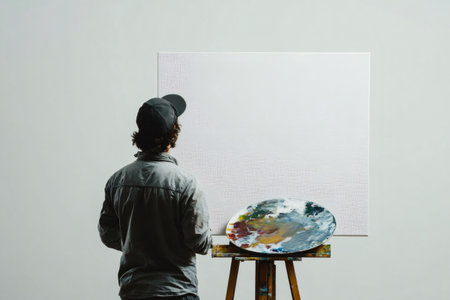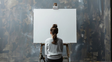 A lone artist before a blank canvas in a minimalist studio embodying originality and passion the quintessence of creativity