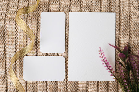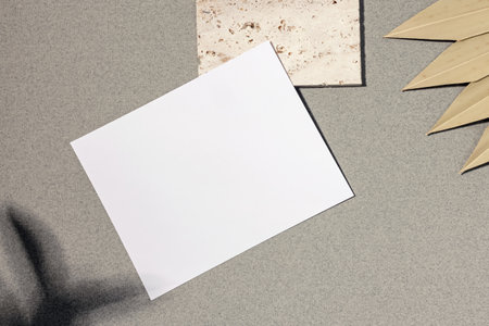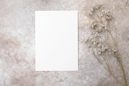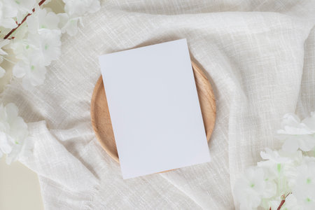 Invitation card mockup, blank greeting card template. Flat lay, Minimalist style.