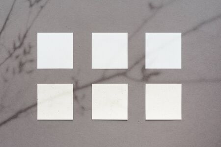 Design concept - top view of set of white business cards on white table for mockup, 3d render
