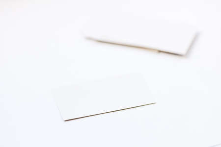 Stack of blank white business cards. Mockup business cards on white background with clipping path