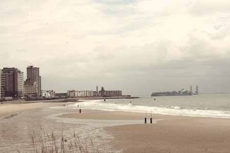 Panorama of Dunkirk from the beach. Dunkirk, Hauts-de-France, France.