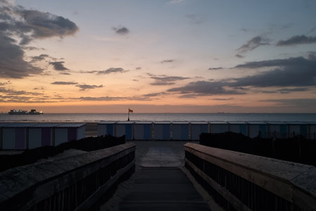Seaside during sunset in Clacton-on-Sea in England.