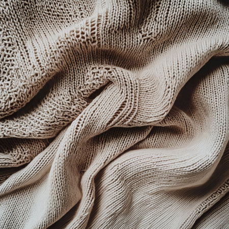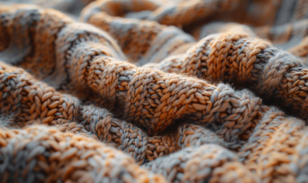 A cozy knitted sweater texture, highlighting its soft and intricate patterns.