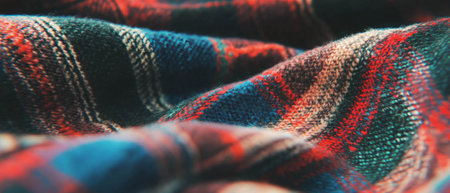 Cozy plaid blanket, autumn tones of brown and red