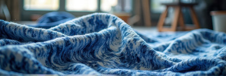 Soft blue and white textured fabric on floor surface. That the image is generated using AI.