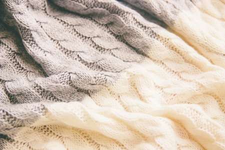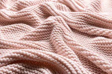 Warm knitted fabric as a background. Close-up.
