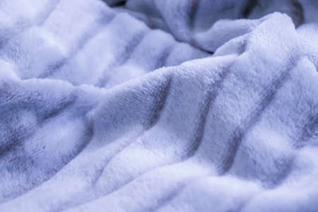 soft furry fabric background. cozy fleece blanket. crumpled bed cover. bedroom sleep and comfort concept. copy space.