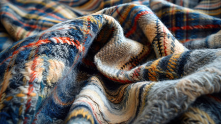 plaid blanket warm knitted closeup. selective focus. big