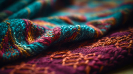 Vibrant colors of woven wool pillow collection generated by artificial intelligence