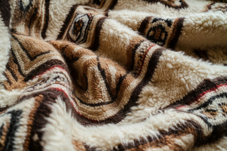 Ultra-detailed Peruvian Alpaca wool blanket texture, soft, warm, and rich in natural earthy tones.