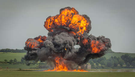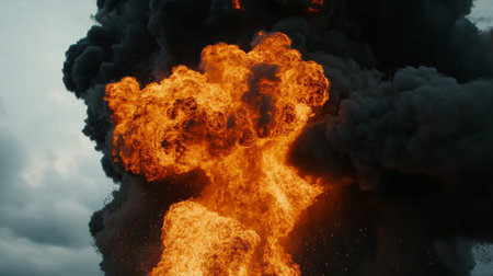 A breathtaking explosion showcasing vibrant flames and thick smoke against a dramatic sky. This image captures the raw energy and intensity of a powerful event, perfect for conveying feelings of chaos and danger.
