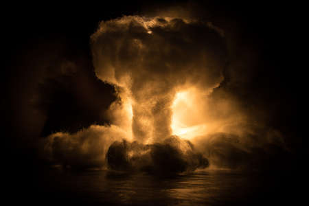 Nuclear war concept. Explosion of nuclear bomb. Creative artwork decoration in dark. Selective focus