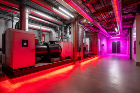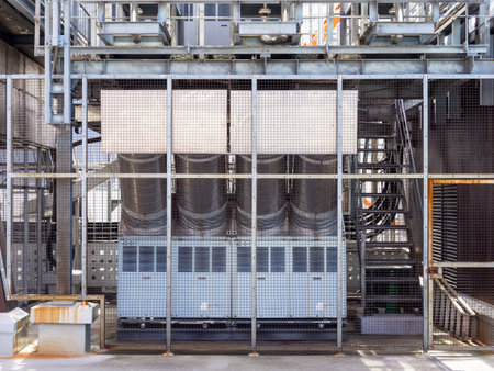 Equipment, cables and piping as found inside of a modern industrial power plant