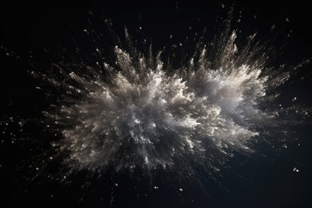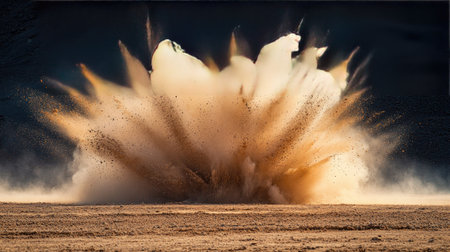 A violent burst of dust scatters in every direction, frozen in time against a dark, moody background.