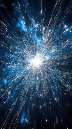Vibrant abstract background showcasing dynamic light bursts and glowing particles that evoke a sense of depth and movement in a cosmic atmosphere