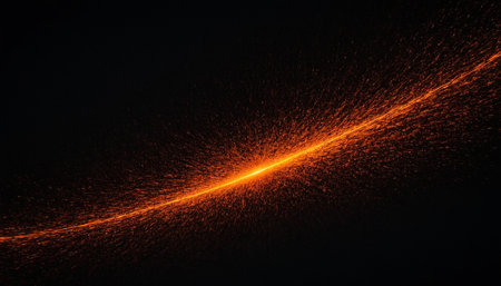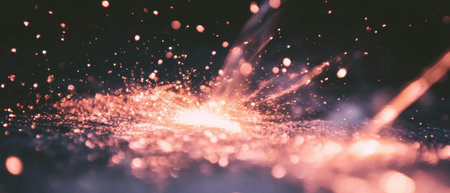 explosion of vibrant orange particles erupts from a central point, scattering glowing dust and fiery trails across a dark canvas with powerful energy and motion, creating a mesmerizing visual.