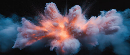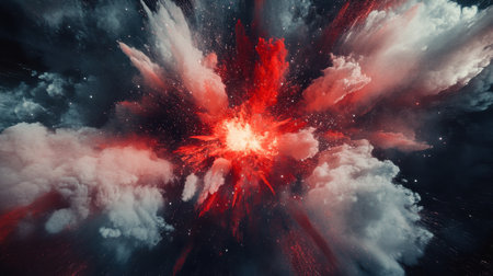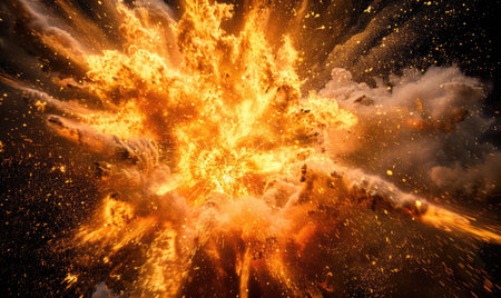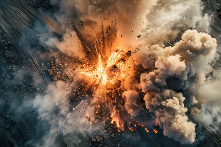 A stunning depiction of a powerful explosion, showcasing a fiery core surrounded by thick smoke and debris, creating an intense and dynamic visual with captivating energy.