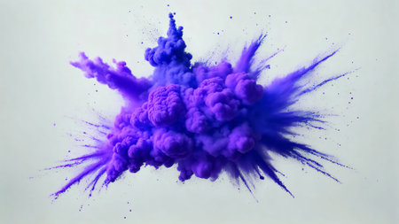 A striking ink explosion captured in mid-air, spreading intricate details and textures against a clean white background. Perfect for creative designs, artistic projects, and abstract concepts