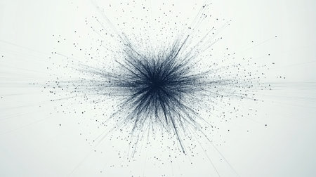 flurry of shimmering silver particles bursting with energy and motion against a dark background