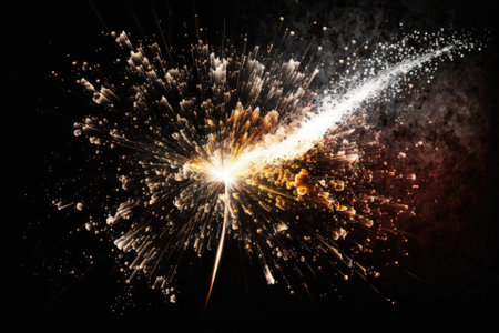 Flying sparks when the fuse of a fireworks rocket is ignited. Generative AI