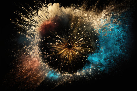 Abstract background with fireworks and gold, black, and blue glitter. Christmas and July 4th holiday concepts. Generative AI