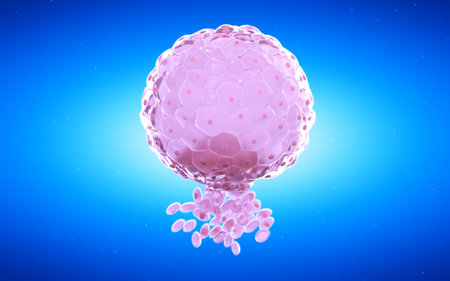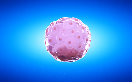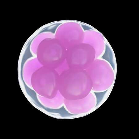 Human preimplantation embryo developing during in vitro fertilization, revealing the initial stages of cellular mitosis and supporting reproductive science