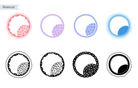 Blastocyst with stem cell icon set. Embryo development stage. Pregnancy, insemination and fertalization concept. Human sexual reproductive system. Flat vector illustration. Medical poster for clinic.
